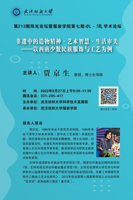 讲座预告:第213期阳光论坛暨yl7703永利第七期衣·道学术论坛