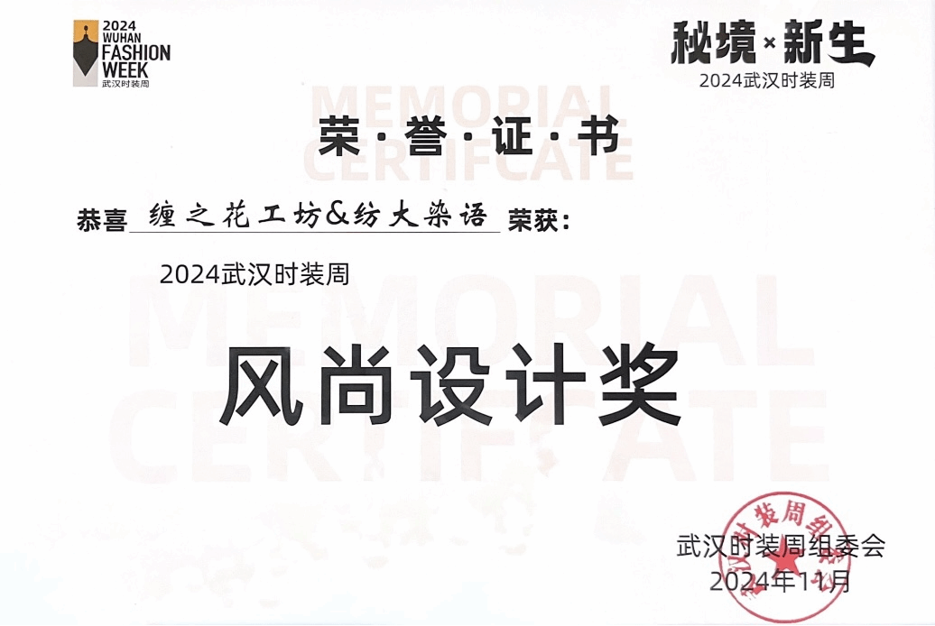 11月23日晚在2024武汉时装周纺大专场中,yl7703永利郭丽教授和王妮副教授非遗服饰品牌联合发布会“花迹·染兮”圆满落幕。值得一提的是,此次发布会「纺大缠之花工坊」“花迹”系列,邀请了湖北英山缠花传承人陈广英;「纺大染语」“染兮”系列,邀请了中国纺织非遗大使苗族挑花传承人滕静蓉,进行设计作品的创新合作。同时,非遗印染的开场领秀为yl7703永利郭海燕副教授,发布会现场观众爆满,都为纺大非遗强大的师生设计团队设计作品鼓掌和点赞。