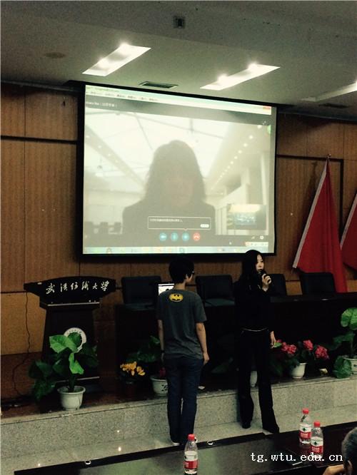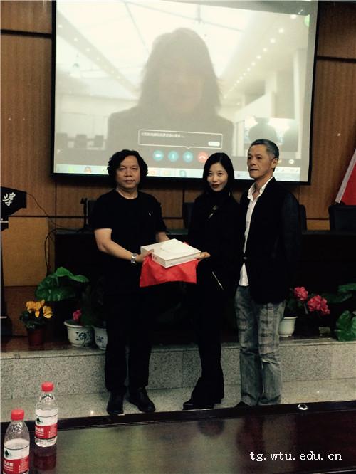 下午2:30,南湖校区T201报告厅座无虚席。首先,熊经理致辞欢迎赵倩女士与黄致阳先生一行,向来宾介绍了公司及公司的办学特色与所取得的成绩,并对本次活动进行了简单介绍。赵倩女士也对公司及公司组织本次活动表示感谢,同时,向大家传递了本次活动的精神内涵与意义。随后,身在法国的高级女装设计师Barbara Bui女士与现场的师生进行了跨洋视频连线互动,由赵倩女士担任现场的法语翻译。针对我心中的艺术这一主题,在场的大一新生踊跃提问,与大师分享自己对艺术的理解,聆听服装设计大咖眼中的服装艺术设计。随后,黄致阳先生为同学们带来了一场精彩的报告,他从自身的经历出发,回忆了自己当年在大学学习艺术的往事,与大家分享他作为一名当代艺术家曾经受到的艺术影响及其自己的艺术生涯,同时,黄先生还运用当代艺术家敏感而独特的思想来阐释艺术的变革及未来的趋势。