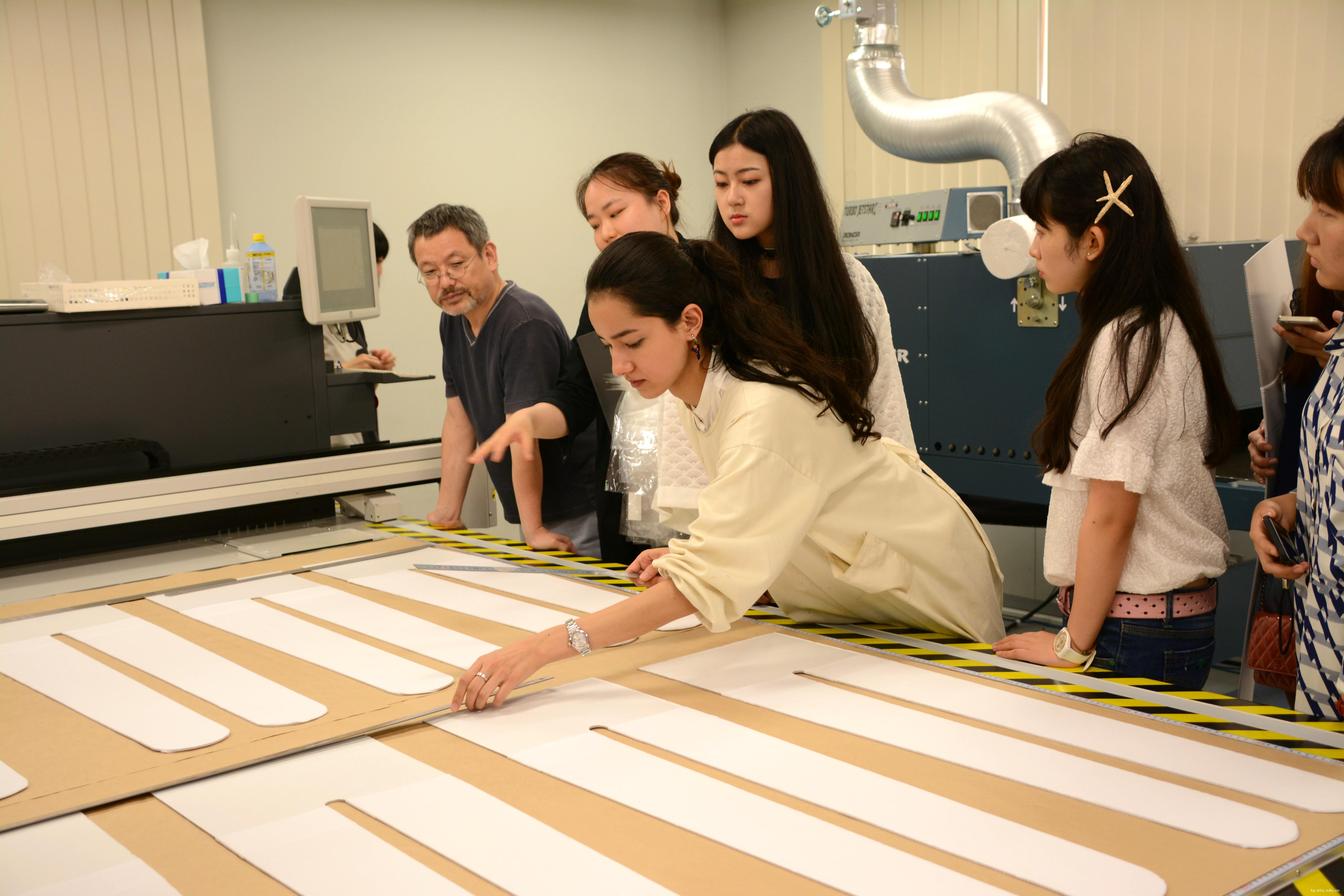 游学期间,同学们对日本文化学园大学的空间21、时尚调查中心、和服展等教学设备设施进行了参观学习,深刻感受了文化学园大学的时尚气息;此外,还主要参加了文化学园大学为她们专门安排的课程学习。高村是州教授为同学们讲授时尚画实习;河本和郎教授讲授用CG等软件、数字印染机等进行课题制作,了解现代科技对设计、生产的促进作用;近藤尚子教授为大家详细介绍日本的民族服饰——和服及和服试穿,使员工近距离体验日本的和服文化。同学们对日本文化学园大学的课程教学表示非常满意,教授们渊博的专业学识与和蔼的教学态度让同学们深深感动,校方在生活上的周到安排也让同学们感到无比的温暖。