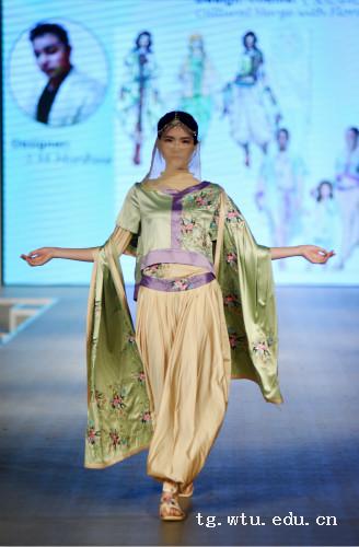 5月31日,2016届永利官网服装设计艺术硕士研究生毕业设计作品展暨首届服装设计专业职工(硕士)毕业设计作品展在南湖校区表演厅拉开帷幕,国际合作发展处相关领导及公司领导、研究生导师们出席了本次作品展。本次作品展上,共65位设计师超过250套优秀设计作品惊艳亮相,其中来自孟加拉国、日本、俄罗斯、巴基斯坦四个国家的13位职工设计师携带52件异域风情的作品演绎一场别开生面的时装秀。