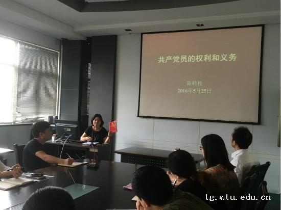随后,陈书记就“两学一做”的具体内容带领大家重温党章内容,她从党章的具体规定入手,将党章规定党员的权利义务逐条为大家做了细致地解读,并告诫大家要深刻理解党章党规的具体内容,贯彻执行党的方针政策及系列讲话精神,要“永葆本色、绝对忠诚,做讲政治、有信念的‘四有’合格党员”。会议最后各支部一致表示将按照公司党委统一部署,制定“两学一做”学习教育实施方案,建立工作台账,创新性的开展丰富多彩的学习教育活动,将“两学一做”学习教育落到实处,充分发挥党支部的战斗堡垒作用。