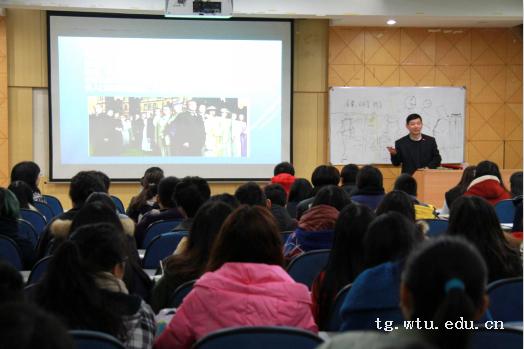 11月30日上午,在南湖服装艺术楼教学楼201武汉雅黛丽服饰有限公司副总经理干德超先生受邀为中日班近百名同学进行了《服装学概论》中品牌策划与市场营销章节的的课程教学,这是中日合作办学迎来的首位企业导师。