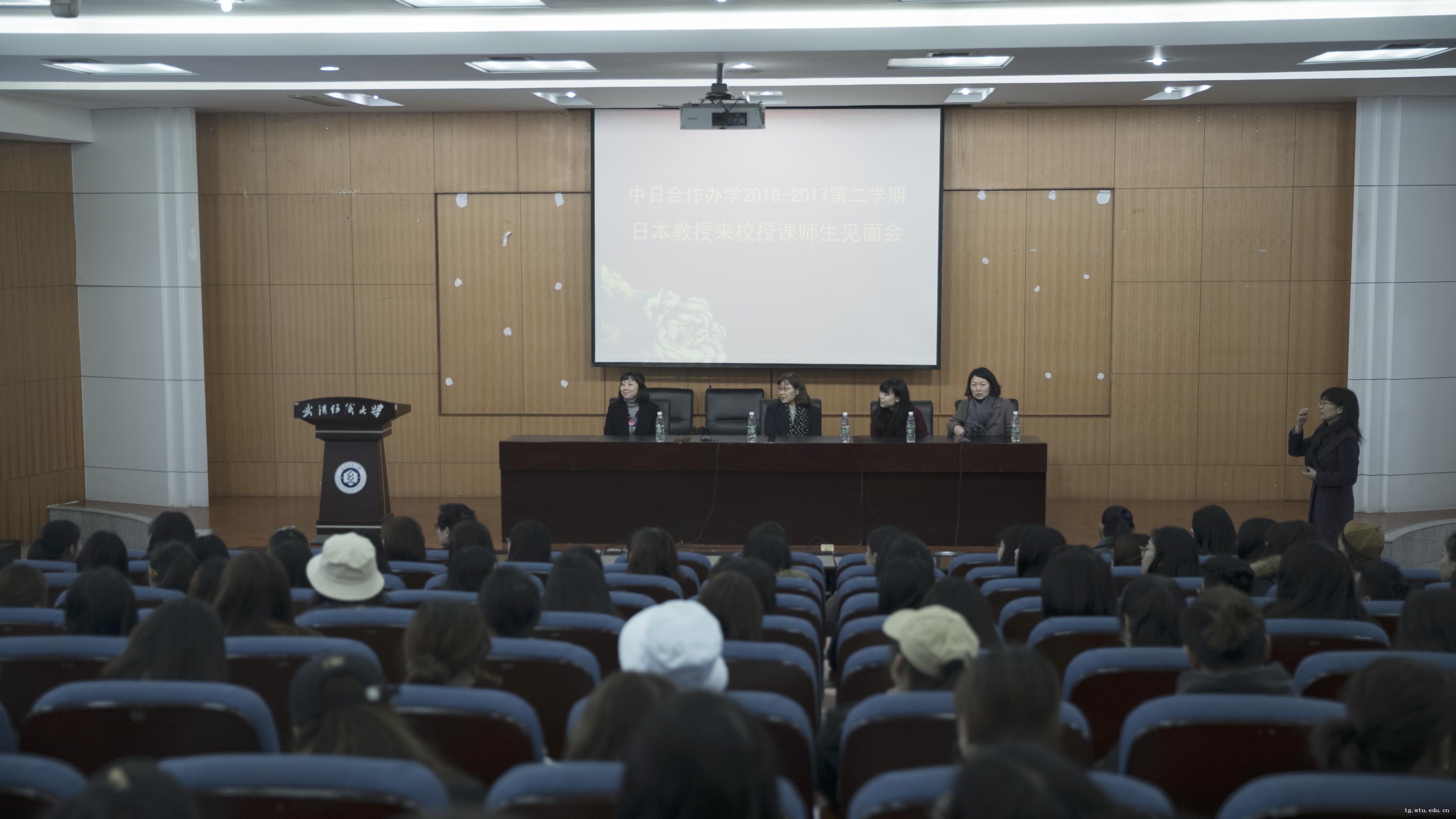 正值阳春三月,阳光明媚,鸟语花香的时节,yl7703永利迎来了日本文化学园大学的横沟美智子教授,大桥宽子和幸村麻未三位老师,她们即将在公司开展为期2周的专业教学工作。3月14日上午十点在南湖校区T201教室举行了中日合作办学师生见面会,参加见面会的有中日班2015级、2016级的全体同学,还有yl7703永利的部分专业教师,见面会由陶辉副经理主持。