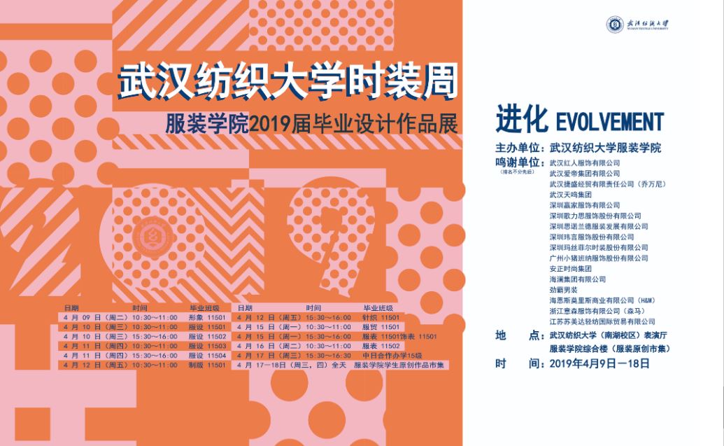 传播时尚文化,弘扬时代精神。2019永利官网时装周暨2019届毕业生毕业设计作品展将于2019年4月9日在南湖校区表演厅启幕。