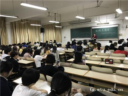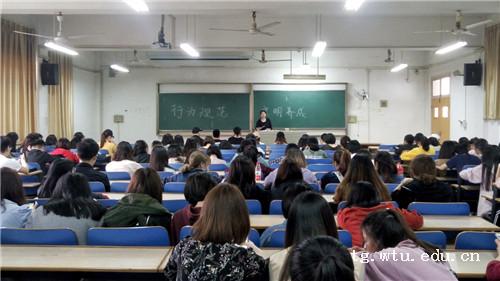 张智梅老师分别从文明的释义和文明的践行进行了解读和宣讲。借以教室、宿舍、网络三个平台从言和行两方面提到文明的践行具体建议和要求。希望同学们告别陋习,健康文明,提升自己的科学文化修养和思想道德修养。