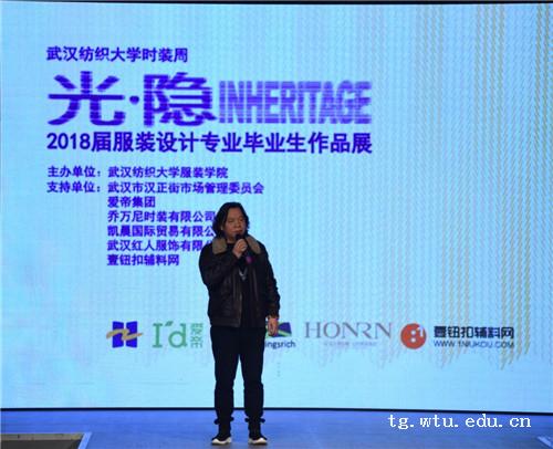 3月20日上午10:30,2018永利官网时装周暨2018届服装与服饰设计专业毕业生毕业设计作品展在公司南湖校区表演厅正式拉开帷幕。校团委书记段薇静、教务处副处长张家胜、武汉市硚口区政协副主席郭建敏女士、区委办公室副主任罗俊先生、壹钮扣辅料网董事长雷志雄先生、武汉红人服饰有限公司董事长助理熊燕女士应邀出席开幕式。出席开幕式的还有yl7703永利全体院领导,以及部分指导毕业设计的指导老师。2018届服设专业毕业生牛浩茹同学主持开幕式。