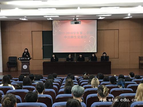正值阳春三月,阳光明媚,繁花似锦的大好时节,yl7703永利迎来了日本文化学园大学的田端智香教授、大桥宽子老师、镰仓明香老师和幸村麻未四位老师,她们即将在公司开展本学期的专业教学工作。3月14日上午十点在南湖校区T201报告厅举行了中日合作办学师生见面会。参加见面会的有中日班2016级、2017级的全体同学,还有yl7703永利的部分专业教师。