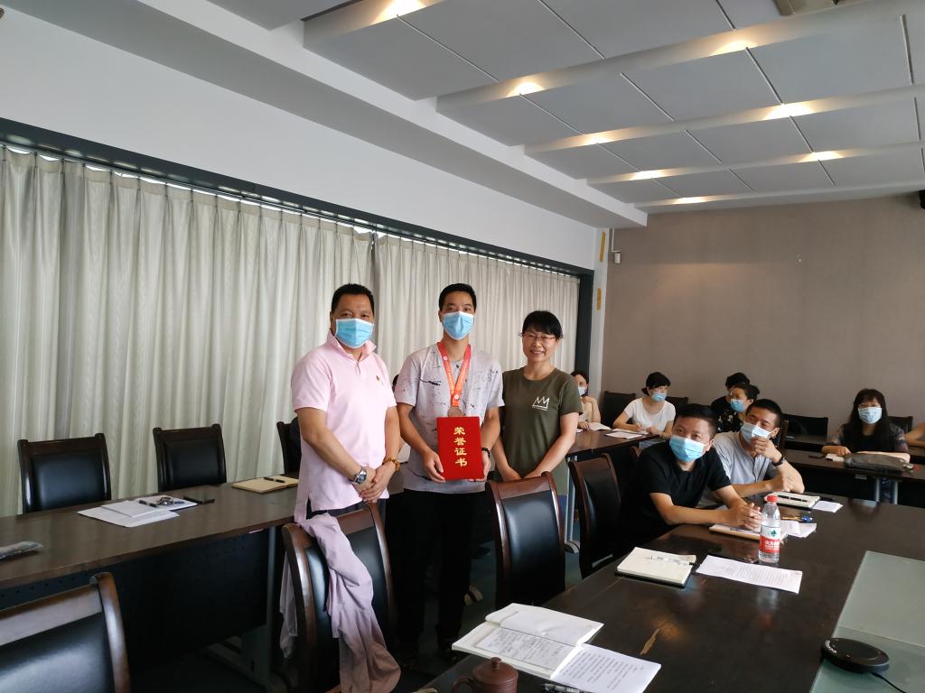 会议伊始,公司经理陶辉对在今年抗击新冠肺炎疫情中做出贡献的老师表示了感谢,随后由陶辉经理和熊兆飞书记为公司在公司“七一”表彰中获评抗疫先进个人的教师代表进行了现场颁奖。随后,公司分管教学工作副经理江学为汇报了本学期线上教学工作的基本情况及下学期开课的准备情况、学习通OBE教师培训、国家级、省级双一流专业申报结果等内容;分管科研工作副经理袁大鹏汇报了本学期公司教师参与国家、省级科研项目申报情况;分管员工工作副书记黄勇汇报了毕业生离校工作、员工日常报平安打卡、暑期涉及到重要赛事以及新学期新生班主任的选聘工作事宜;公司经理陶辉主要介绍了公司产品的基本情况并对公司下学期重点工作的开展进行了强调:她指出,下一阶段要继续统筹做好保证教学工作的质量和疫情防控工作两不误。