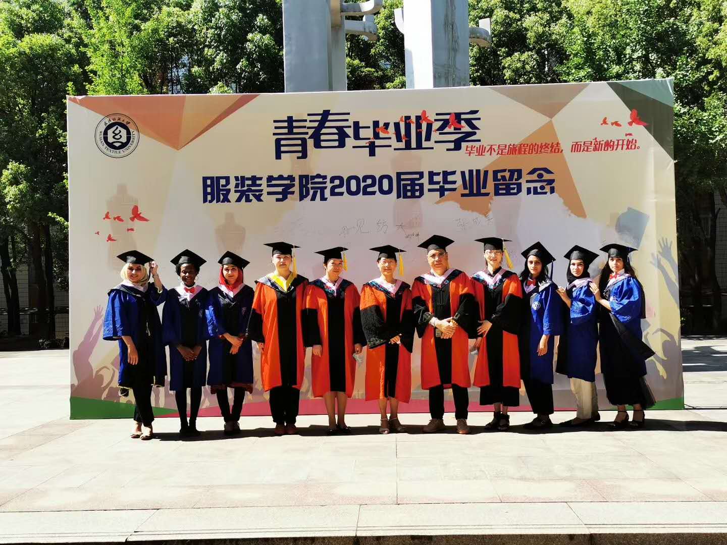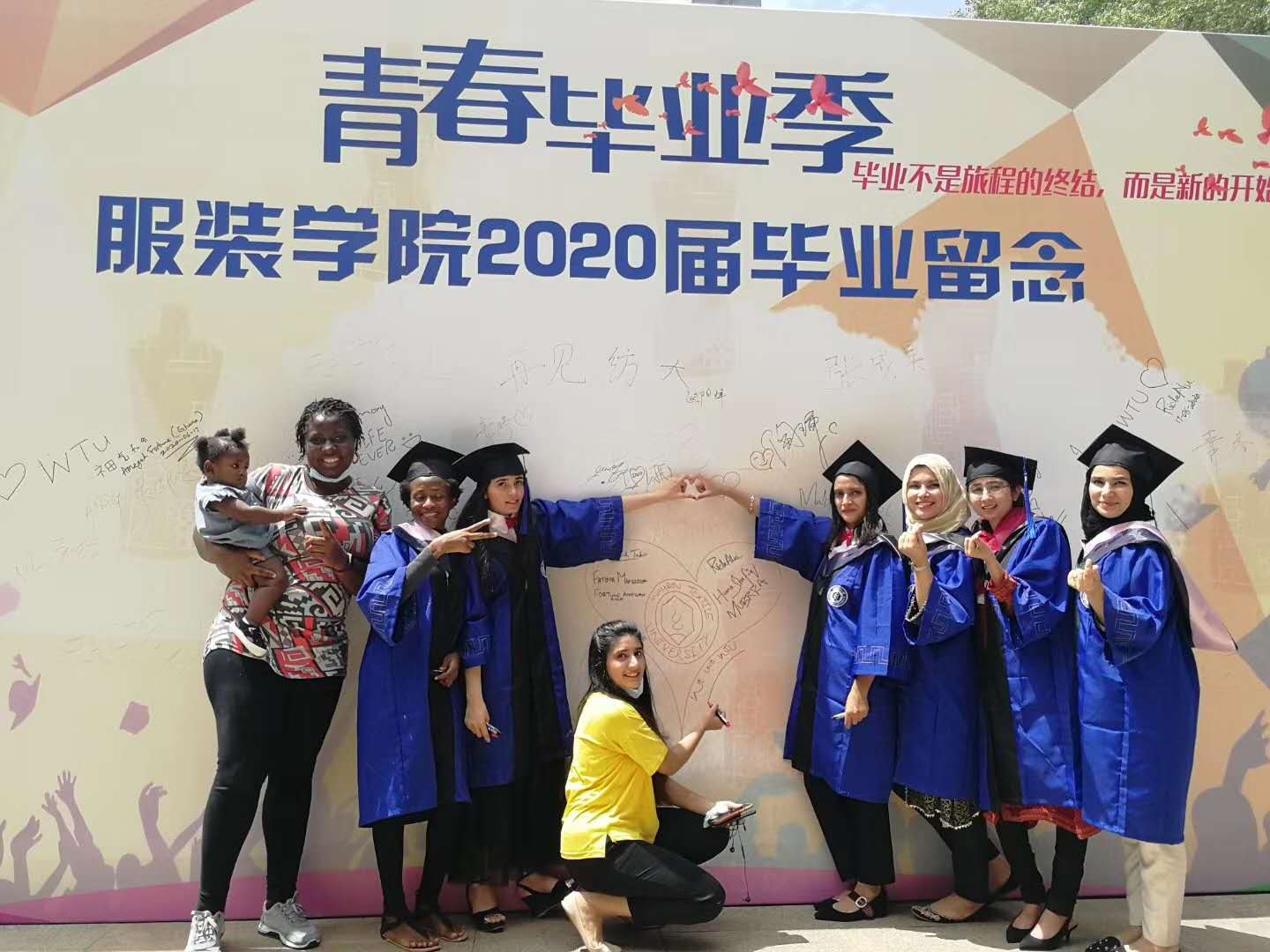职工们收到这份特殊的礼物后非常高兴,他们穿戴好学位服,徜徉在校园,在南湖校区的标志性建筑前合影留念。他们拿起画笔在公司毕业生留言墙描绘纺大校徽,用画笔抒发对公司的感激之情。2020届在华毕业职工和武汉人民一道经历了新冠肺炎疫情的考验。疫情期间,公司相关部门克服重重不便,为他们的生活和学习提供了正常的保障。职工Amegah Fortune说:感谢公司在我们留学期间,尤其是疫情期间对我们的关怀和照顾,我们在武汉很安全也很安心。谢谢纺大和中国!