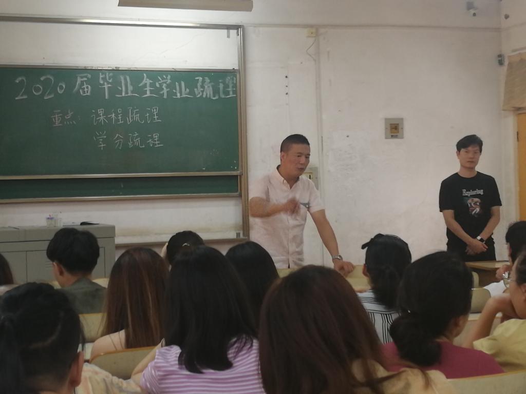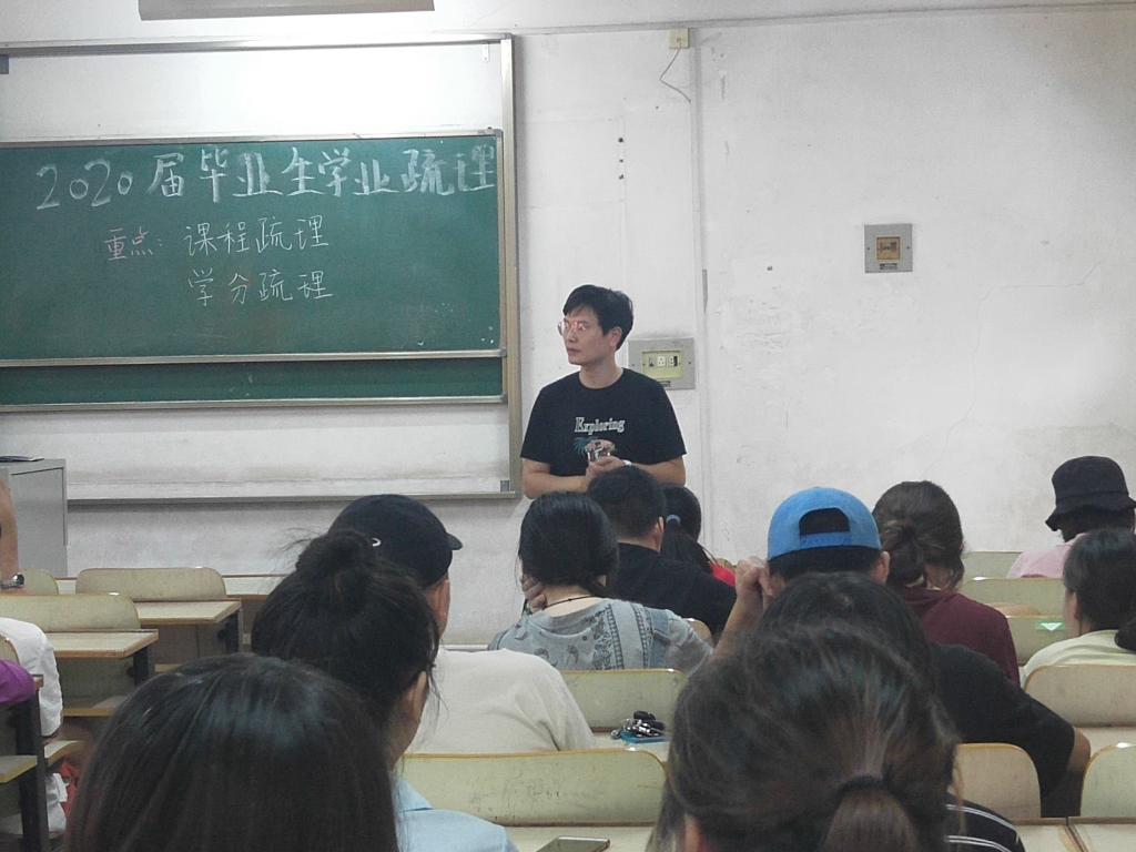江经理对2019届毕业情况进行了简单的介绍和分析。同学们对于未来的发展问题,无论是毕业、考研还是出国,一切都建立在学业合格、符合毕业条件的基础上。希望大四同学提高对重修和选课的重视,强调了本次期初的选课和重修报名时机的重要性。
