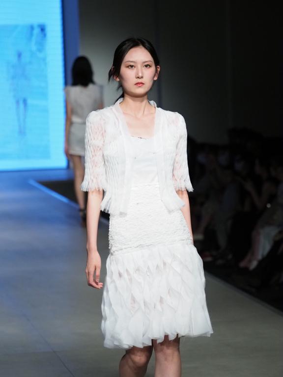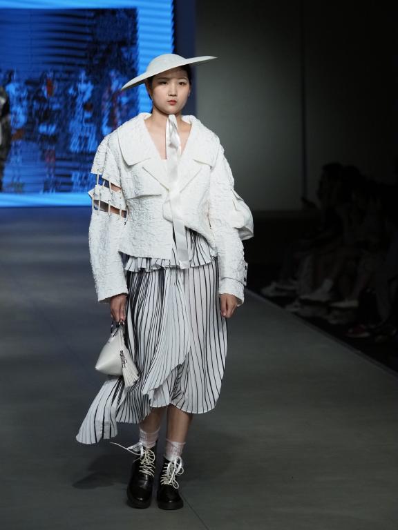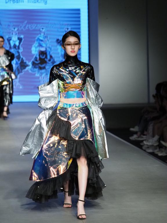 一根根纤维以不同的形态组成了形态各异的面料,一块块面料经过结构的塑造相互契合,创生出唯一的服装。设计师们以过往的沉淀搭建未来发展的基石,为观众们带来了一场精彩绝伦的视觉盛宴,同时为三年学业生涯画上圆满句号。