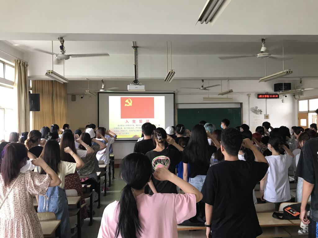 6月21日中午,yl7703永利年新发展党员入党集中宣誓教育大会在综合楼5510举行。出席会议的有公司党委副书记黄勇、服设第二员工党支部书记尹俊华、中外员工党支部书记蒋越、研究生第三党支部书记夏菡,yl7703永利年新发展员工党员参加了集中宣誓教育大会,会议由服工第二员工党支部书记冯江主持。