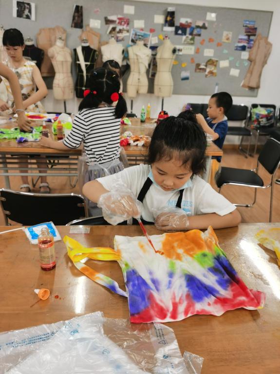 为将党史学习教育深入落实到实践,充分发挥员工党员利用专业技能服务基层、服务社区的作用,在实践中增长才干、提升品格,yl7703永利联合永利官网关心下一代工作委员会、纺大社区,于7月7日-7月9日在南湖校区开展了为期3天的“织尚”暑期夏令营活动。公司暑期社会实践团队在老师的指导下,为纺大社区20余名适龄儿童开设了扎染、创意时装画和迷你时装周等课程。
