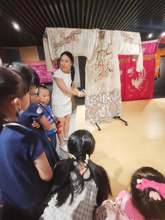 7月7日,“织尚”夏令营首先在南湖校区纺织非遗馆举行了开班活动,在纺织非遗馆老师的带领下,小朋友们参观了各类非物质文化遗产。了解汉绣技术,欣赏汉绣作品,每一位小朋友都被其中深厚的传统文化底蕴所感染,对这些非物质文化遗产产生了极大的兴趣。