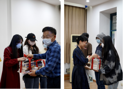 陶辉经理、杜新年书记为公司十个班级代表赠书。据悉,本次公司赠送的书籍全部由经理书记亲自挑选,书单涵盖中国历史,国内外名著,艺术专著等。