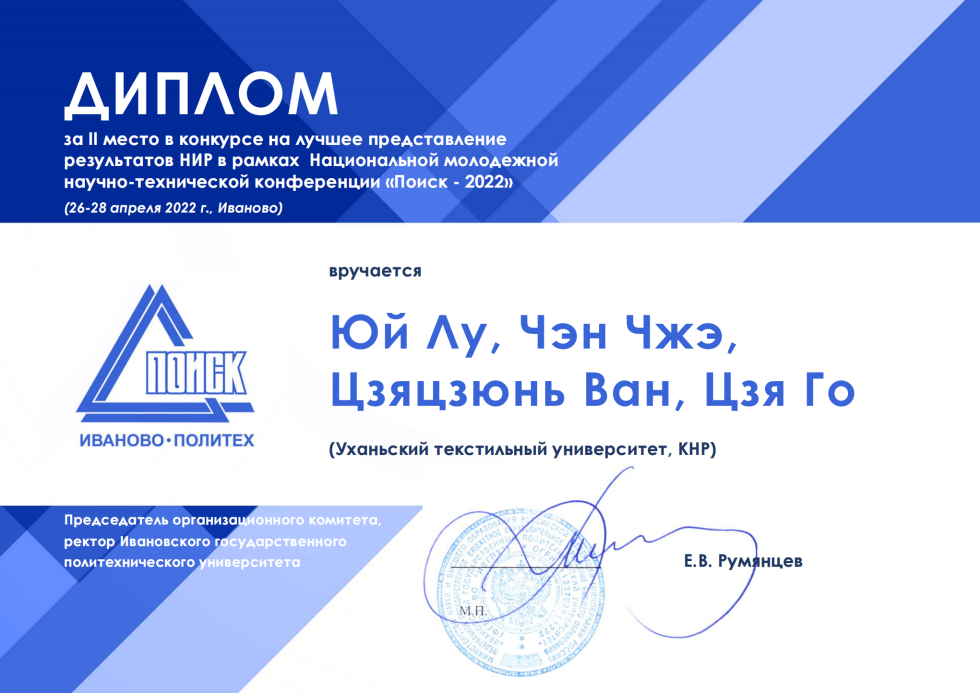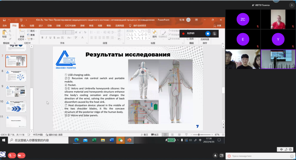 4月26-28日,第25届国际青年科学技术大会“ПОИСК 2022”在俄罗斯伊万诺沃国立理工大学举行,服装学院三名本科生应邀参会并作全英文主题报告。yl7703永利部分教师和员工线上参加了会议。