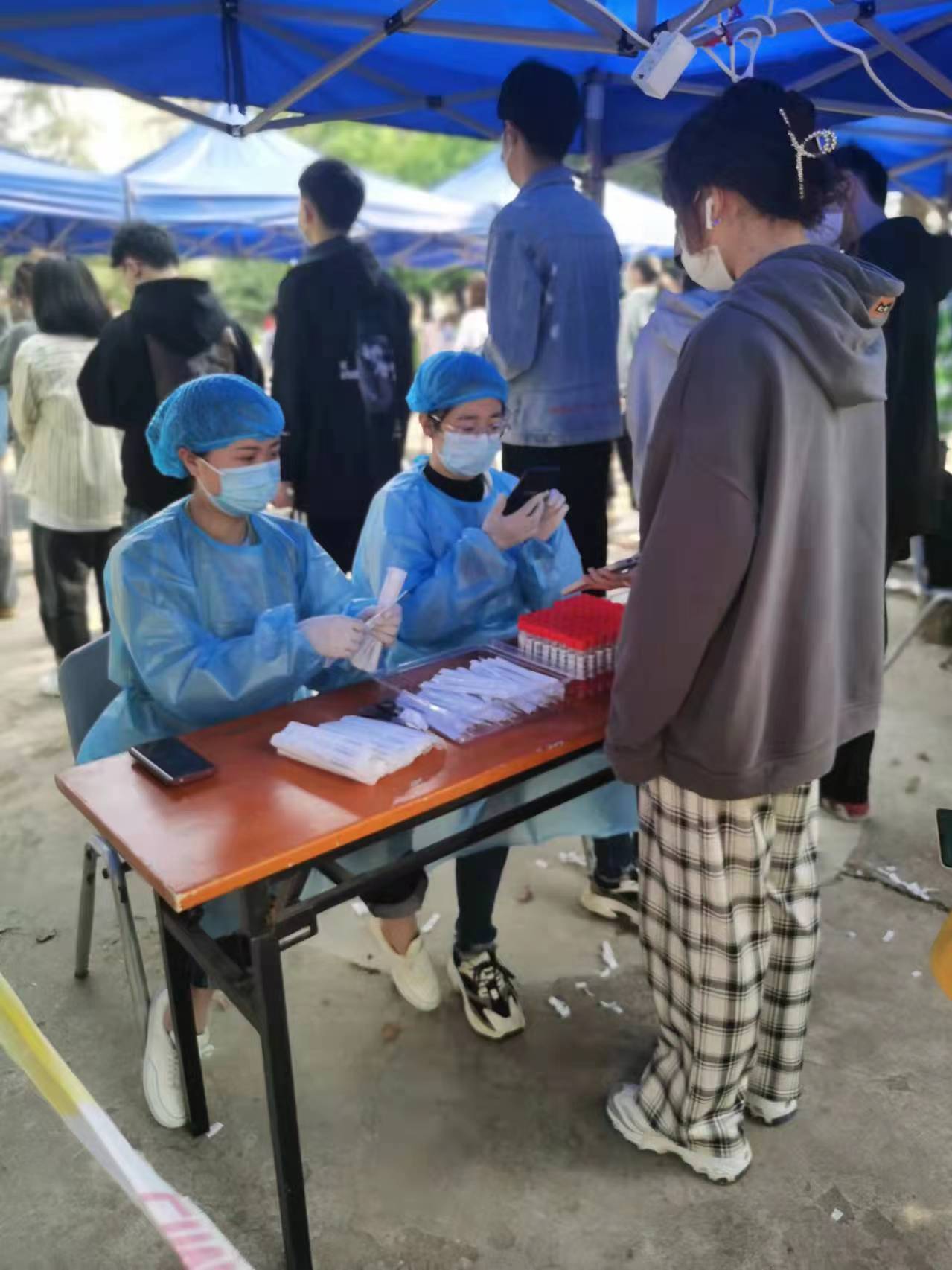 5月3日,郎丽、胡玉琴老师为师生服务,传递温暖笑容