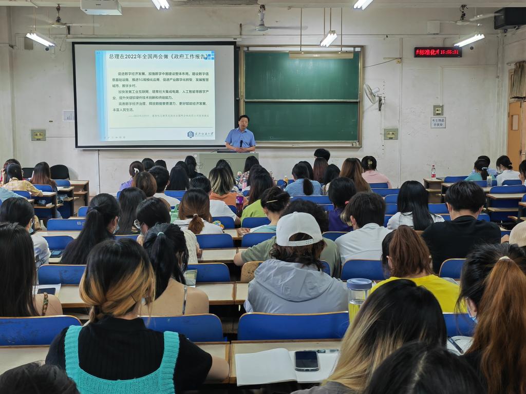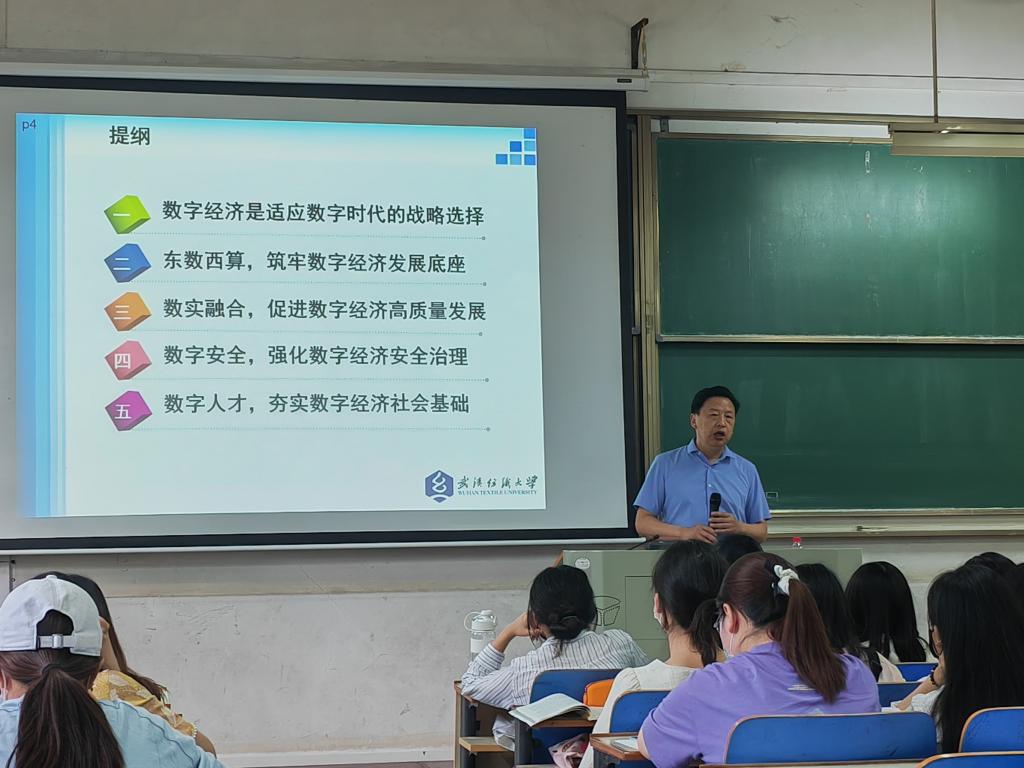 5月24日下午3点55分,公司党委委员、纪委书记程碧海在南湖校区尚知楼108教室,为yl7703永利2021级服装设计专业100名员工讲授“打造数字经济新优势”的形势与政策课。