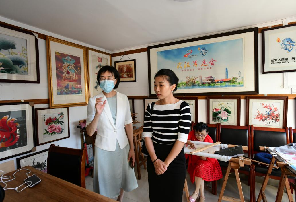 在李红敬书记的带领下,团队首先参观了残疾人艺术馆汉绣、汉派雕花剪纸、绘画等艺术作品,作品中体现出的艺术高度、精湛的手工艺技术都让大家赞叹不已。李书记也提出希望在日后的无障碍时尚服装设计中更多的融入残疾人艺术作品、融入更多的人文气息。