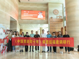 为确保研究成果的权威性和准确性,中心组建了以熊兆飞教授代表的艺术学、经济学、设计学在内的交叉学科研究团队。团队主要成员包括1名双金顶奖设计师,5名博士、2名副教授老师以及12名研究生。该团队以严谨的科学精神及态度、标准的社会科学研究方法,在浙江、福建、江苏及辽宁等地的产业集群中,对以七匹狼、利郎、海澜之家、柒牌、雅戈尔、劲霸、特步、安踏等为代表的男装龙头企业进行了全面的数据采集分析,人物专访、问卷调查,历史沿革调研等大量工作。