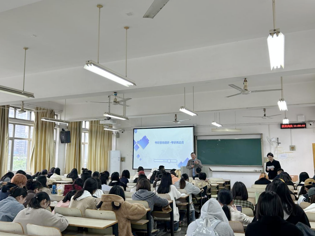 最后,张俊具体分析了今年考研形势,介绍了各院校近几年各专业的考研数据。尽管当前考研报考速率有所减缓,但报考人数仍在增长,希望大家重视对于自己未来的规划。张俊老师分享了关于如何择校、备考学习进步的方法等,要求同学们把握在校时间,踏踏实实复习