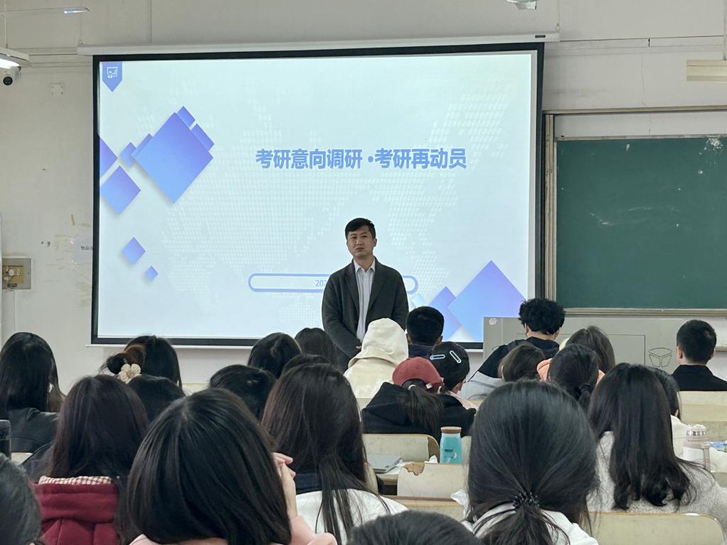 郭泰辰作动员讲话。他谈到,动员会是起点,希望大家树立远大志向,沉下心来备考,并振作起来为之奋斗,公司会积极为大家解决备考、就业中的问题,为提高大家考研、就业做好服务,推动高水平考研高质量就业工作。希望大家通过自己的努力,为下一届学子树立榜样。