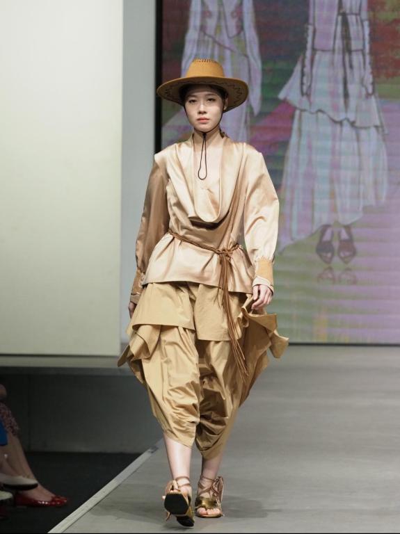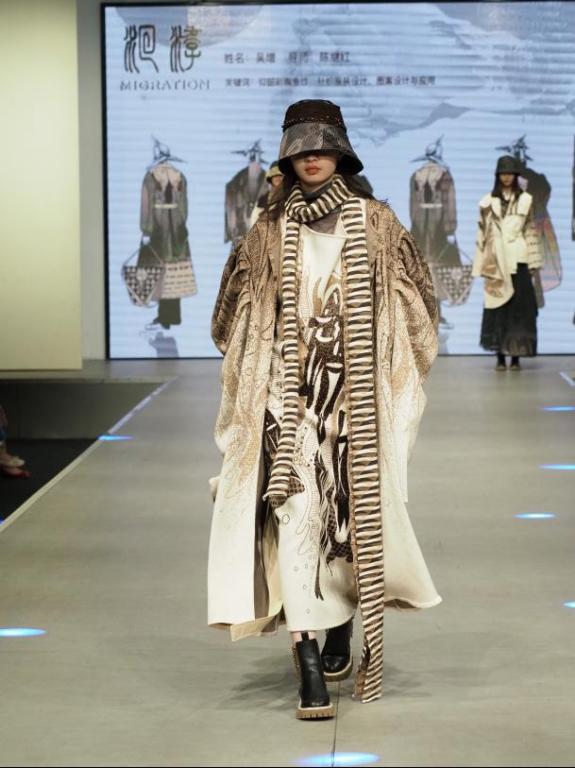 下午场“万象·华裳”为文化专场,开场优雅的中国传统舞蹈让观众叹为观止。设计师们以传统文化为主线,融合可持续时尚设计和“黄梅挑花”、“桃源刺绣”等传统非遗创新设计等设计理念。纹样上采用中国传统民族纹样、蝶恋花纹样、龟背纹、菱形纹等。设计师们将传统文化中的内涵进行提炼,独具特色的设计引来了台下观众阵阵雷鸣般掌声。