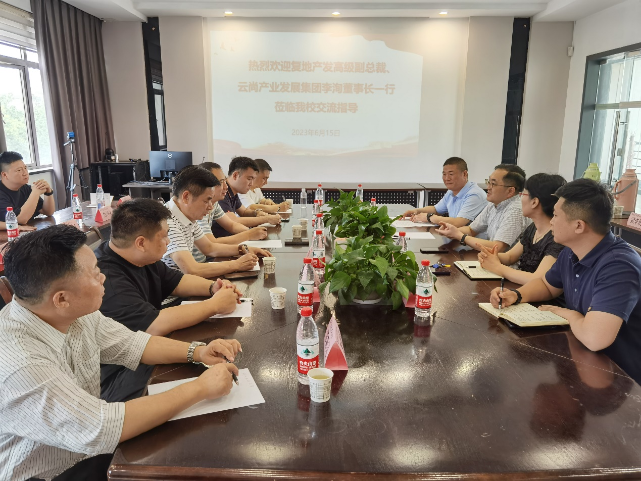 6月15日上午,复地产发高级副总裁、云尚产业发展集团董事长李洵一行来校交流合作,副董事长傅欣出席会议,yl7703永利相关领导和教师代表参加了会议。会议由yl7703永利经理陶辉主持。
