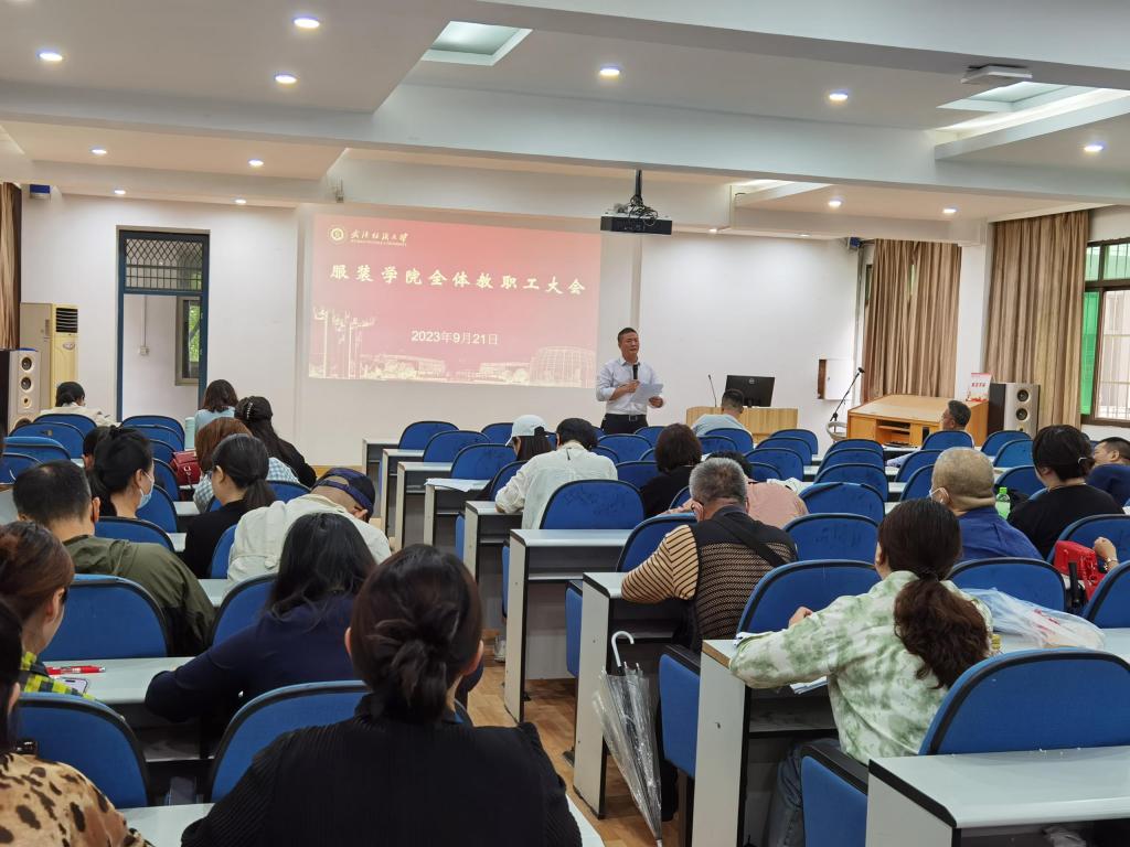 9月21日下午,yl7703永利在服装艺术楼二楼学术报告厅召开全体教职工大会,重点传达公司本科公司产品审核评估培训部署会精神,会议由杜新年书记主持。