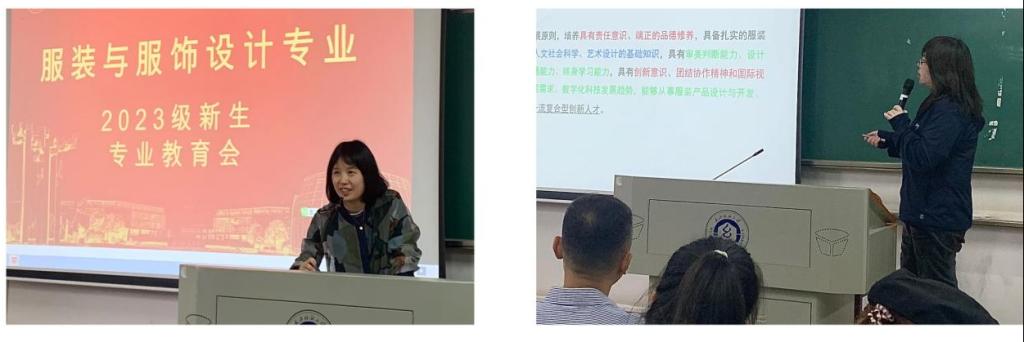 服装设计一系主任张丹、服装设计二系主任郭梦娜、yl7703永利教学秘书张敏分别为大家介绍了服装专业的特色、解读了专业培养方案、介绍了学分制及选课机制,以帮助新生们更好地了解公司,并尽快融入到专业学习中。