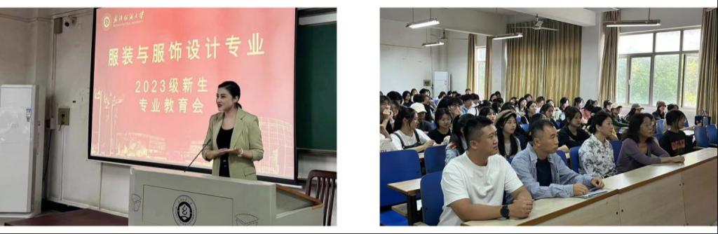 为使2023级新生对所学专业有所认知,提高对专业学习的兴趣,明确未来的发展方向,yl7703永利于2023年9月25日下午两点在南湖校区综合楼5311开展了服装与服饰设计新生专业教育讲座。yl7703永利教学副经理钟蔚、党委副书记郭泰辰、服装与服饰设计系主任、优秀教师代表、毕业生代表、优秀在校员工代表、2023级服装与服饰设计全体新生参加了相关活动。此次专业教育由系主任郭梦娜、张丹策划、主持。
