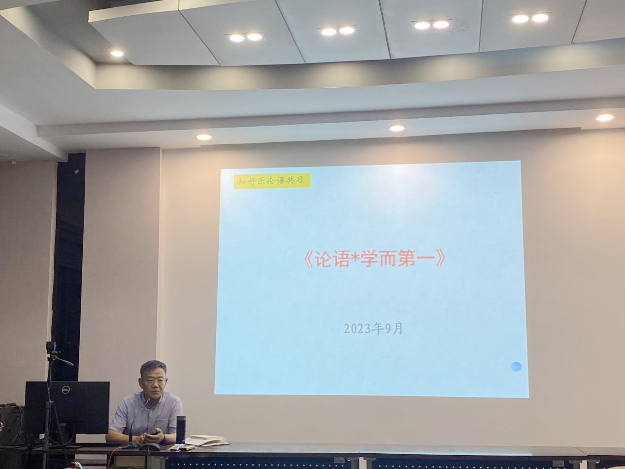 随后,杜新年书记做了《论语·学而篇》的辅导讲座。讲座上,他以“学而篇”为引,用通俗易懂的话语为大家分析了《论语》中蕴含的思想及其现代意义,引发大家思考。