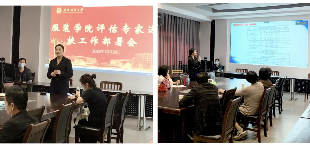 教学副经理钟蔚通过PPT的形式,从审核评估线上阶段总结、yl7703永利迎接专家入校考察工作方案和教师工作细节要求等三个方面进行详细的解读和部署。对实地考察的湖北省非遗中心和服装表演厅具体工作方案、公司卫生大扫除方案、文化艺术氛围布置等工作进行详细介绍和具体部署,责任到人,时间结点,做到人人有任务,事事有人管,落实推进见成效。