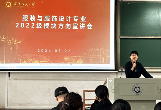 为构建一流服装与服饰设计专业本科人才培养体系,全面提高本科人才培养质量,增强毕业生适应行业产业发展的能力和就业竞争力。在2022版培养方案修订中凝练了服装创意设计、针织创新设计、运动时尚设计、时尚品牌营销等四个模块方向。5月22日上午,yl7703永利在南湖尚知楼109教室举行服装与服饰设计专2022级模块方向宣讲会。yl7703永利经理陶辉、副经理钟蔚、设计1系主任张丹、设计2系主任郭梦娜、模块负责人陈继红副教授、黄皆明副教授、余倩老师、周奕老师及2022级全体服装与服饰设计专业本科生全程参加,宣讲会yl7703永利副经理钟蔚教授主持。