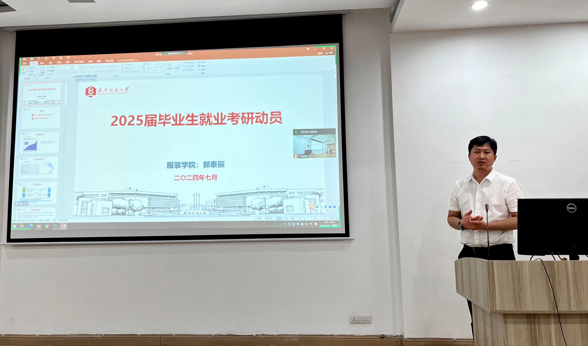 黄李勇副教授以《热爱》为题,从30年怀揣着服装设计师的梦想进入纺大到现在一直从事服装设计工作的这份执着和热爱,强调每个人的设计梦在学习生涯和职业生涯中的重要作用,指出毕业设计本身更是展示同学们个人审美、人文修养、文化传承、社会责任以及专业知识的集中体现,希望大家要保持这份热爱,以最佳的作品回报自己、展示纺大学子的才华和风采。