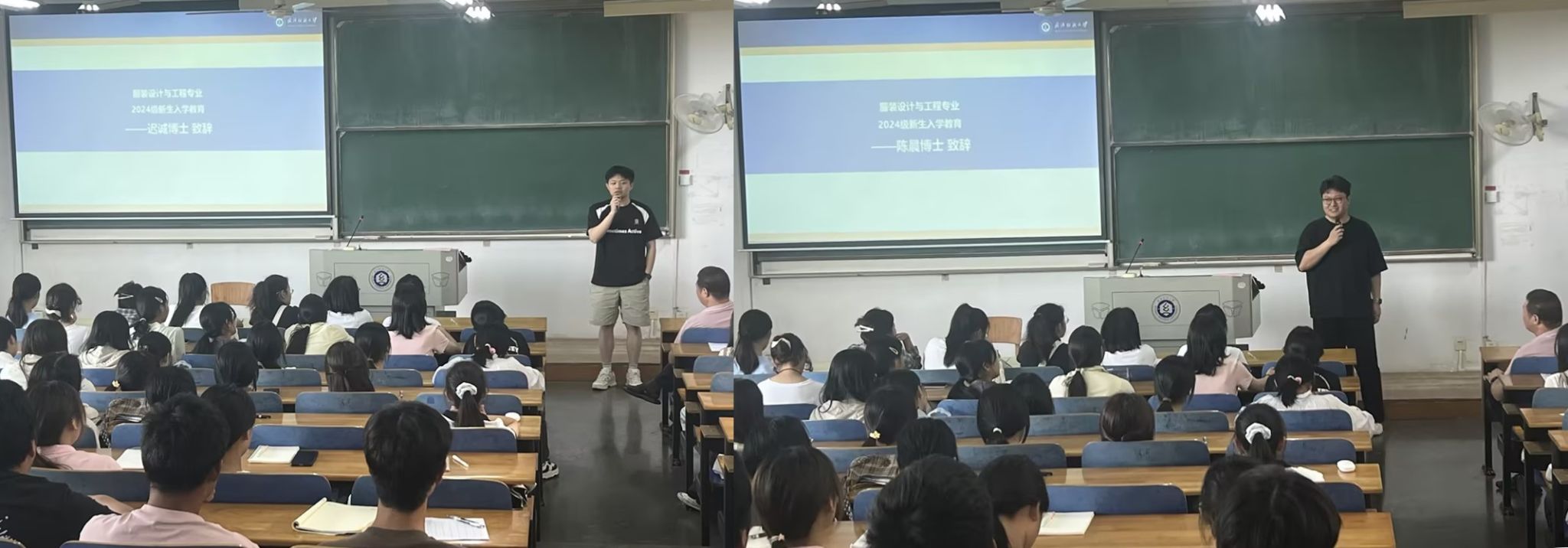 迟诚博士和陈晨博士作为教师代表发言,从不同的角度介绍了服装设计与工程专业的内涵与发展前景。迟诚博士提到,随着纺织服装产业的不断发展,专业人才的需求日益增加,新生应当培养自身的专业素养与创新能力。陈晨博士则强调了资助学习的重要性,鼓励员工培养良好的自律能力,积极参与各类实践活动,提升自身的竞争力。