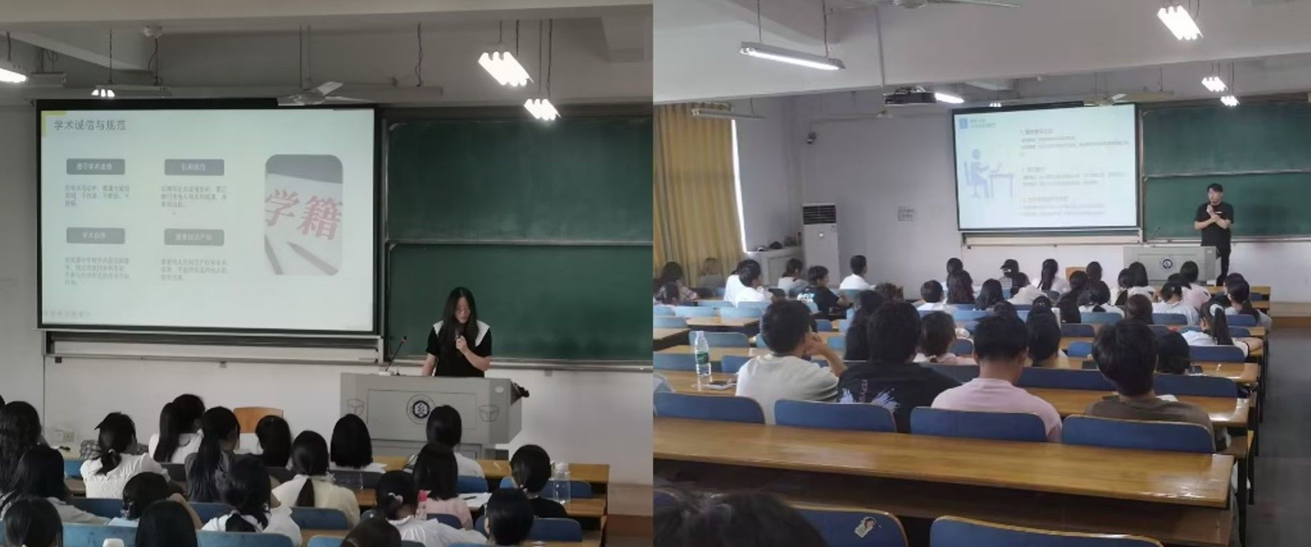 在随后的交流环节中,本科生代表刘逸宣和研究生代表郑兴分享了他们的学习经验与校园生活感受。刘逸宣谈到了本科校园生活、学业规划、学习方法,人际关系等。郑兴则从研究生的角度,分享了从高中到大学,再到研究生的转变,以及学术研究、人际关系、心理健康等方面的心得,鼓励新生勇于挑战自我,突破自我。