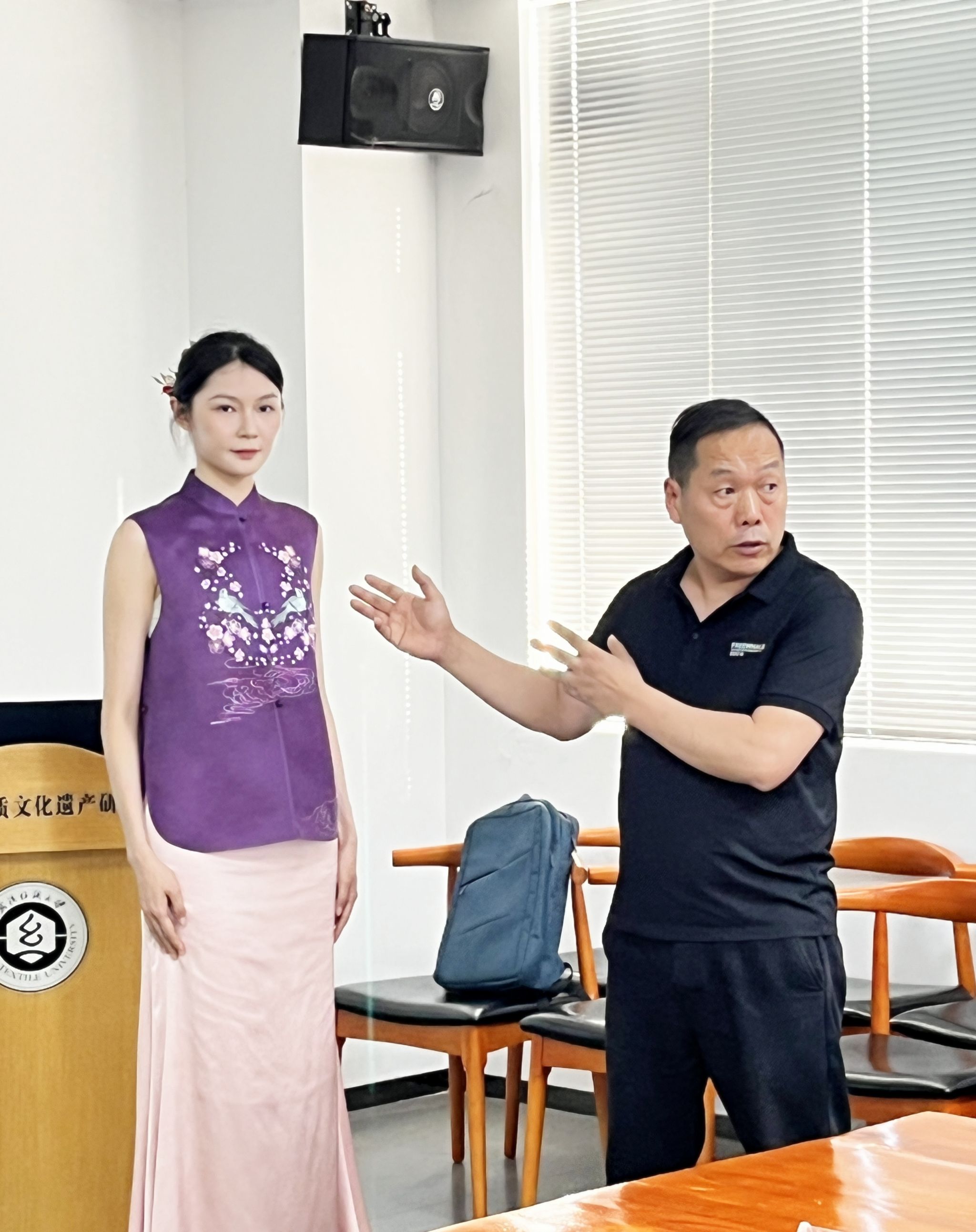 此次调研的主要目的是“长江文化艺术季”开幕活动——非遗服饰秀的筹备情况。荆楚纺织非遗馆负责人叶洪光介绍了设计及筹备工作。永利官网非遗团队对承办此次展演高度重视,以多年来持续的非遗传承人研培计划为基础,以学术研究成果为理论支撑,从湖北丰富的地域文化信息和纹样元素中,提炼和挖掘梅花这一代表符号,聚焦传统刺绣与当代生活的融通,积极探索当代表达的新语境,努力实现中华优秀传统文化的创造性转化和创新性发展。届时,将展示60余套中式时尚与传统服饰,运用时尚流行色彩和汉绣、红安绣活、缠花、大冶刺绣等多种刺绣工艺,展示荆楚传统刺绣与当代时尚设计交融的创新成果。