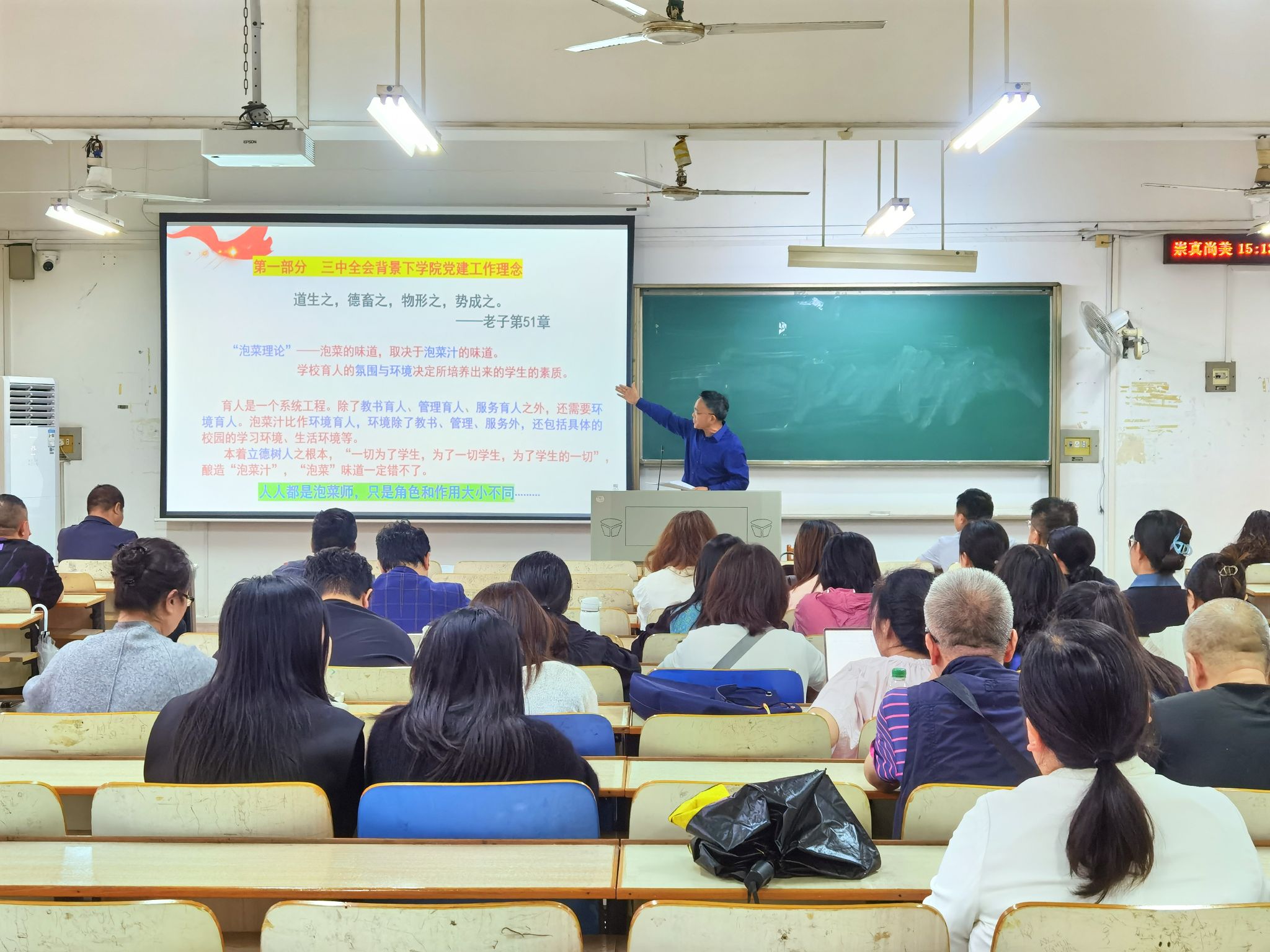为深入学习贯彻党的二十届三中全会精神,进一步统一思想,凝心聚力,10月17日下午,yl7703永利在尚知楼410教室召开了全体教职工大会暨党的二十届三中全会精神学习会。会上,公司党委书记杜新年讲授了学习贯彻党的二十届三中全会精神专题党课。