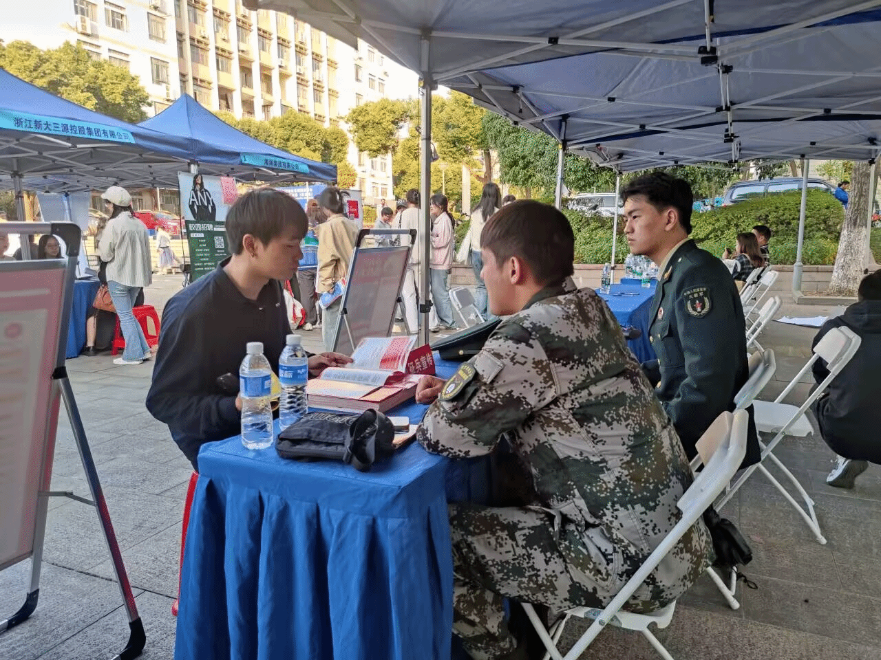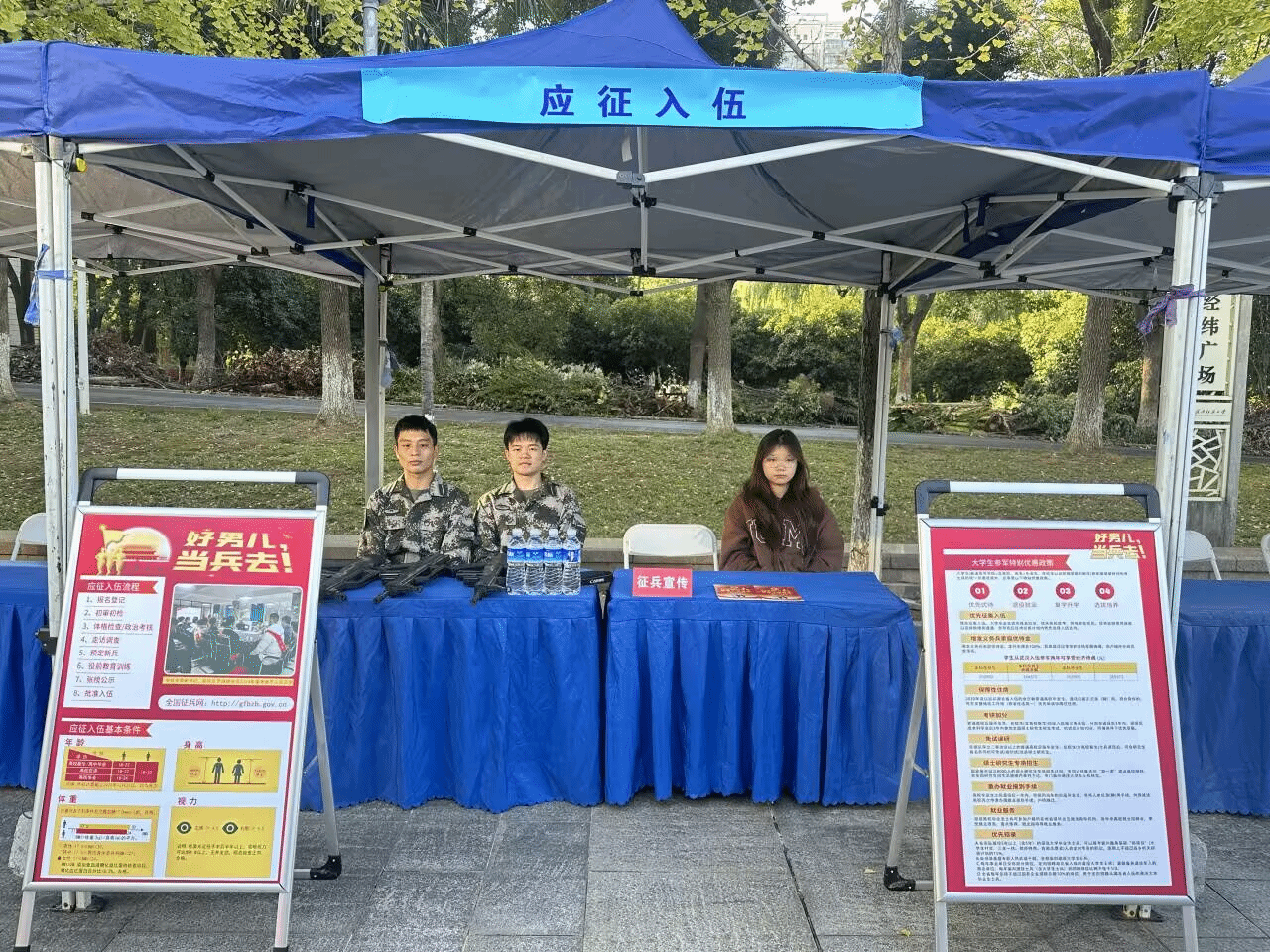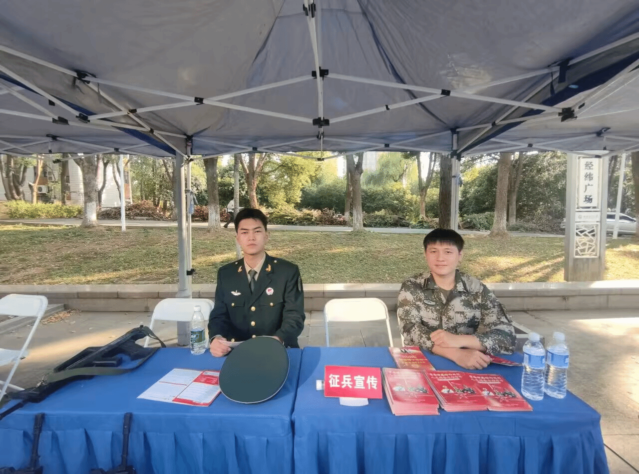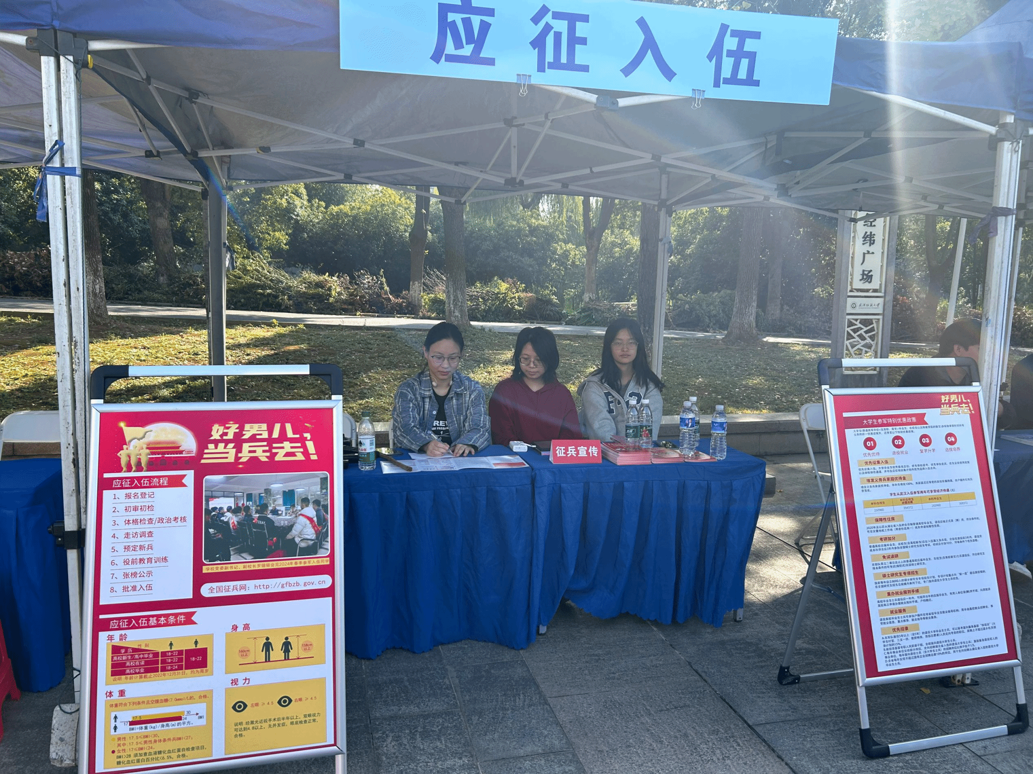 10月31日,yl7703永利在南湖校区西二门广场举办了征兵宣传活动,旨在鼓励更多青年学子积极投身军旅,展现爱国情怀,同时助力秋季校园招聘工作同步推进。此次活动得到了yl7703永利的大力支持,特邀退役军人段金濛、段金濠、高彦聪、程万里为员工们进行政策解读和经验分享。