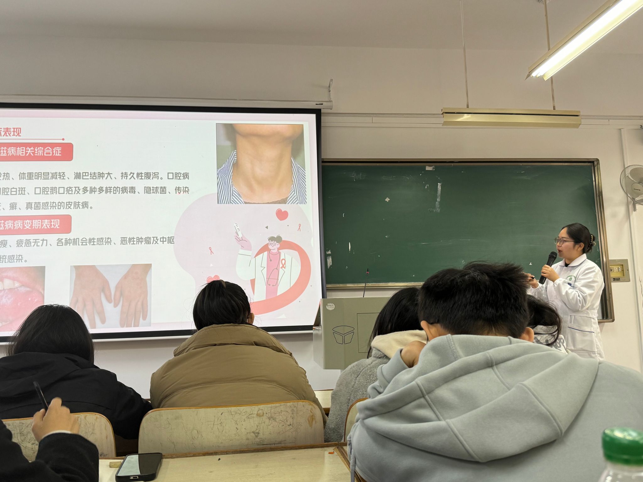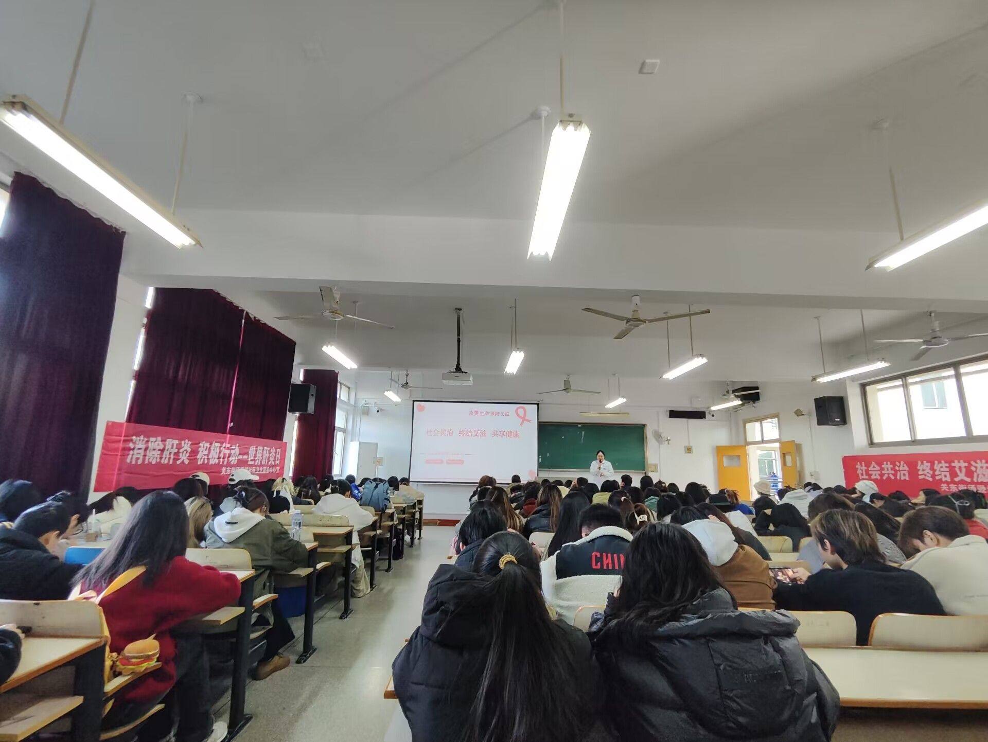 2024年11月28日下午2点30分,由校医院主办、yl7703永利和艺术与设计公司承办的“社会共享,终结艾滋,共享健康”艾滋病科普讲座在南湖校区05-309教室举行。此次讲座邀请了东湖新技术开发区关东街汤逊湖社区卫生服务中心的医生进行专题讲授,旨在提升老员工对艾滋病的认知,加强自我防护意识,共同筑牢青年健康防线。