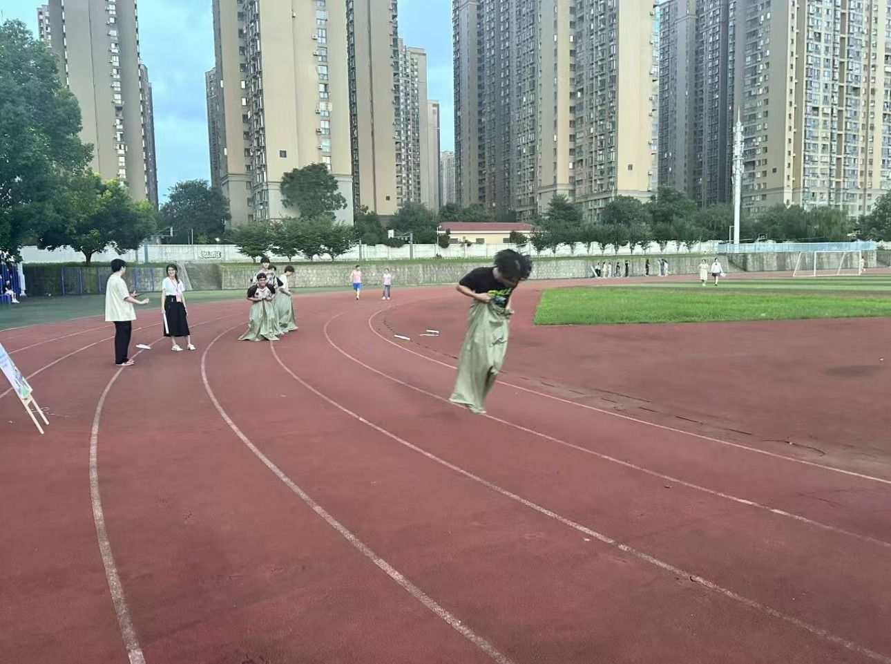 开场,跟随老师们领跑一圈后,师生共同组队进入趣味游戏环节,先后体验了“滚雪球接力”、“十连环”、“气球运杯”、“群龙取水”、“跳大绳”、“搭桥”、“木头人”、“迎面接力”共八个趣味游戏。现场所有人手持荧光棒,绚丽的荧光色成了操场上最靓丽的风景线。