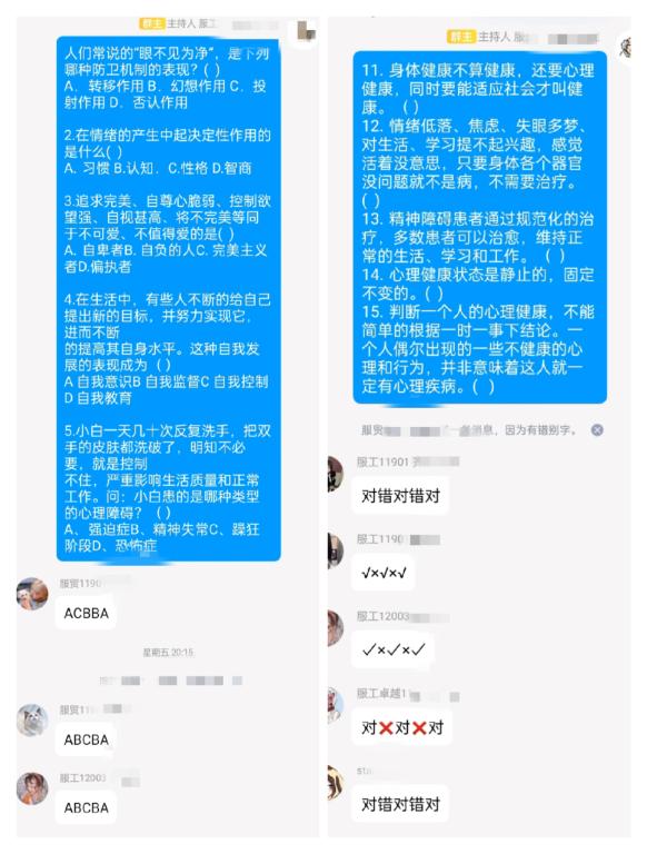 此次活动采取线上形式,有心理知识抢答和歌名竞猜两部分内容。活动过程中,同学们抢答积极,整个活动高潮迭起、气氛十分热烈。