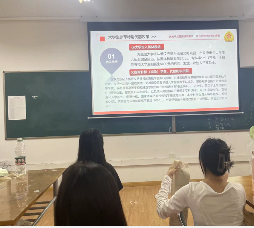 本次系列宣传活动加强了同学们对部队军事、科技素质建设的认识,促进了同学们从成长成才的角度来认识老员工入伍的重要意义。携笔从戎,绽放青春能量,实现家国理想的氛围高涨,保家卫国的热情得到了进一步提升。