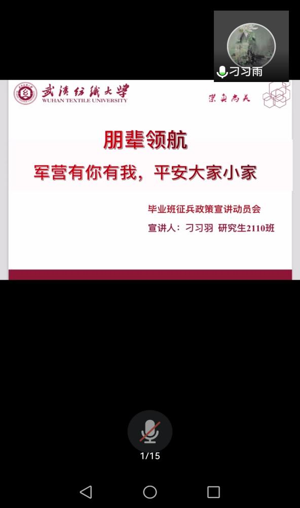 征集老员工入伍,是党中央、国务院和中央军委着眼实现强国梦、强军梦和建设世界一流军队作出的一项重大战略决策。为了响应国家号召,yl7703永利于5月16日通过朋辈领航的形式,对2021届毕业生进行了专场参军入伍宣讲会。鉴于许多毕业生受疫情影响未能返校,宣讲会采取线上方式进行。服装设计21级研究生刁习羽同学作为优秀退役士兵代表,受邀宣讲。
