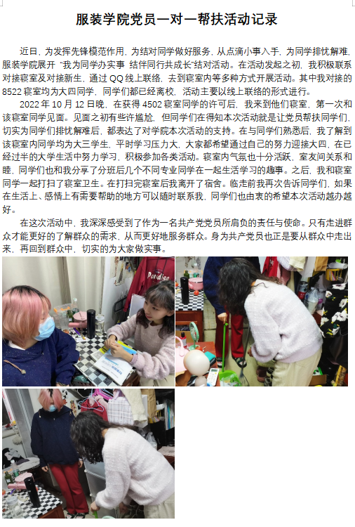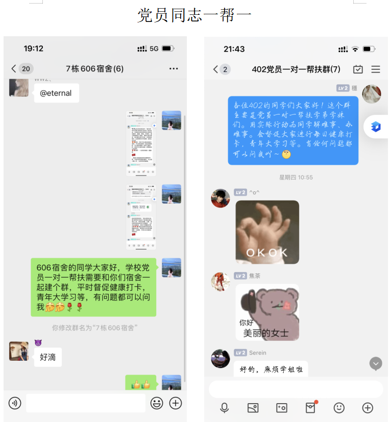 员工党员代表李晓茹等表示定会以身作则,做好表率,继续发挥员工党员的先锋模范作用,对新生进行思想、学习、生活、人际关系、角色转换等5个方面的指导,带动公司员工积极向党组织靠拢。