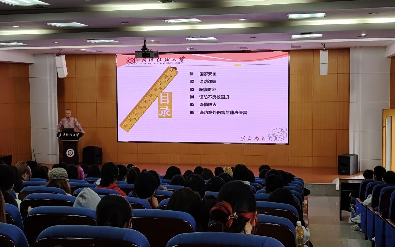 2022年10月24日下午,yl7703永利在尚美楼T201举办安全教育讲座,此次讲座由保卫处主任夏向阳主讲,yl7703永利2022级服装设计与工程专业和服装与服饰设计(中外合作办学)专业员工参加。