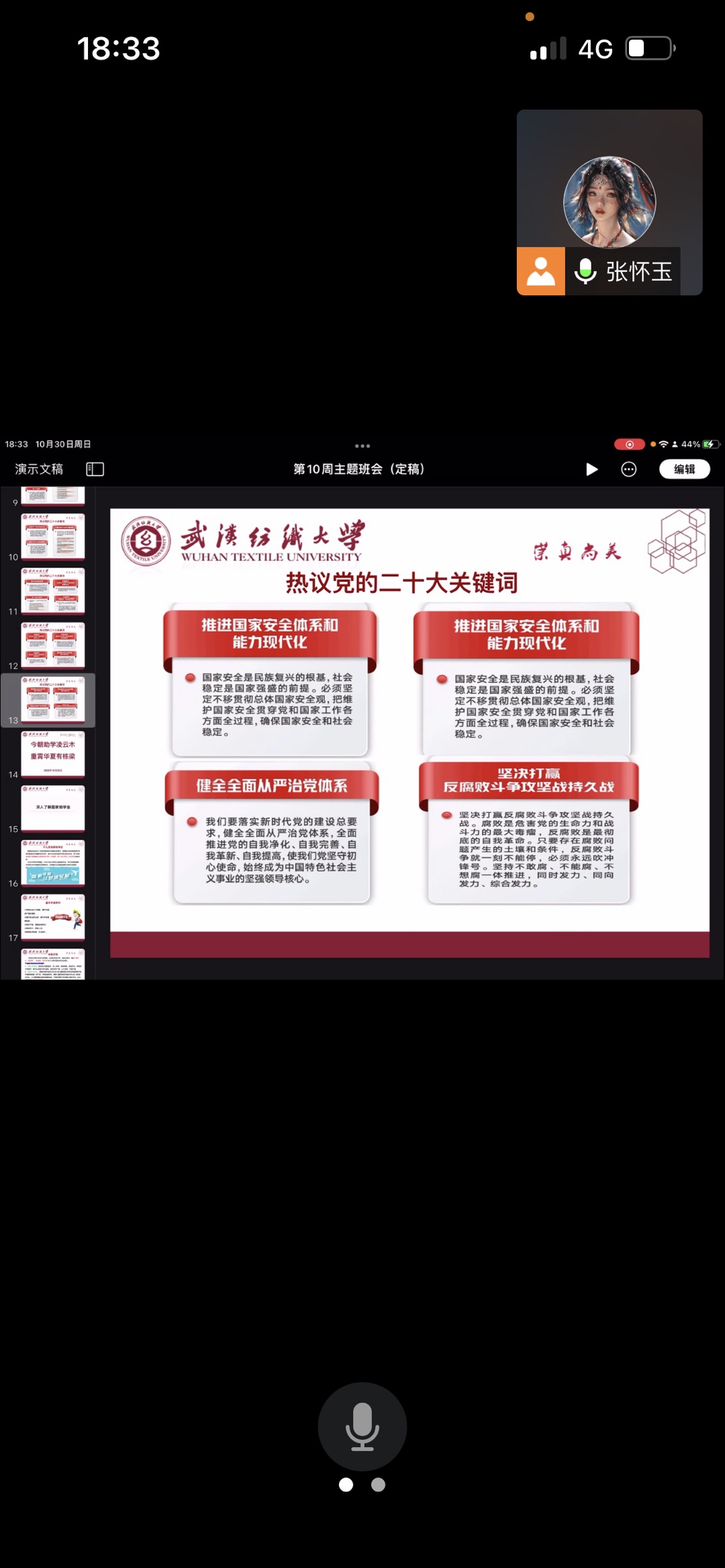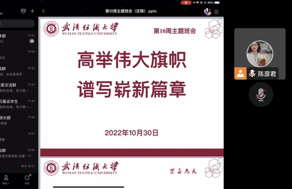 10月30日晚,服装公司召开了晚点名主题班会,各年级辅导员、班主任以“高举伟大旗帜 谱写崭新篇章”为主题,组织同学深刻理解当前面对的复杂形势和艰巨任务,全党必须高举中国特色社会主义伟大旗帜,坚持以马克思主义中国化时代化最新成果为指导思想,奋力谱写全面建设社会主义现代化国家崭新篇章。