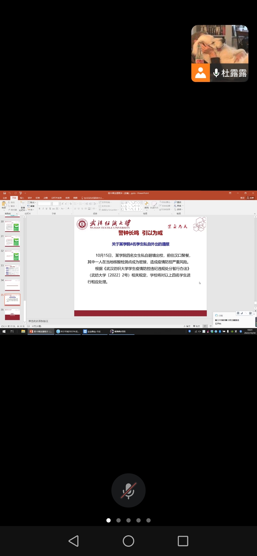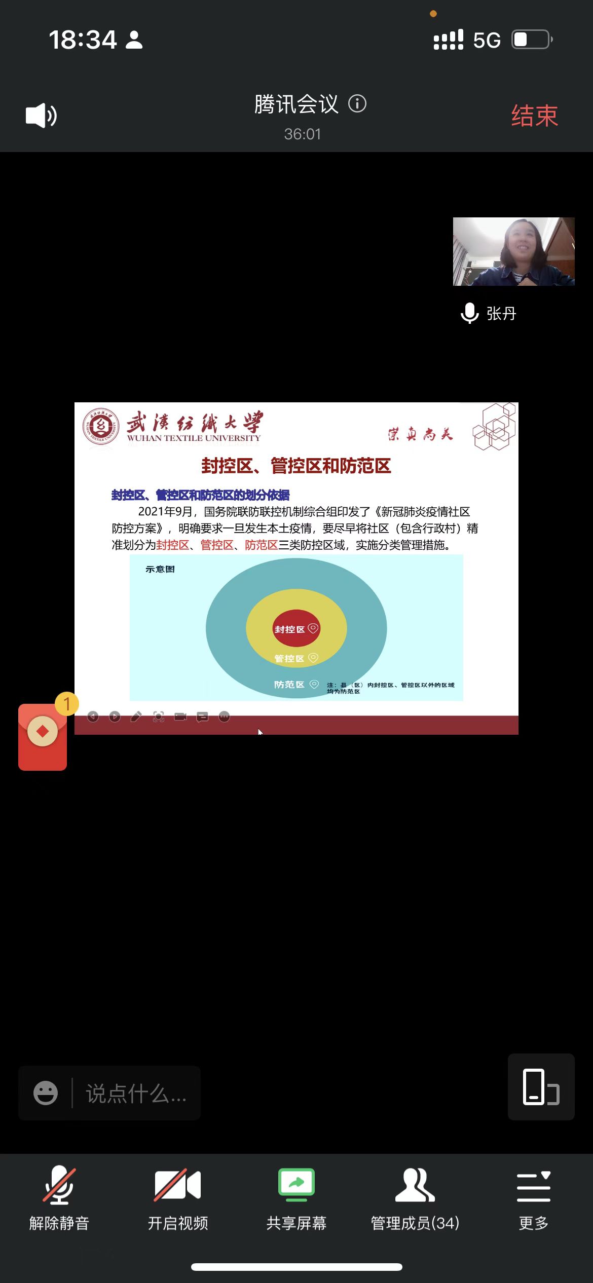 并继续教育引导同学们关注武汉近期疫情,引导员工正确认识“封控区”、“管控区”和“防范区”。通过多种方式组织员工学习健康管理、疫情防控和个人防护知识技能,提高员工健康素养,增强疫情防控能力,筑牢校园防疫屏障。